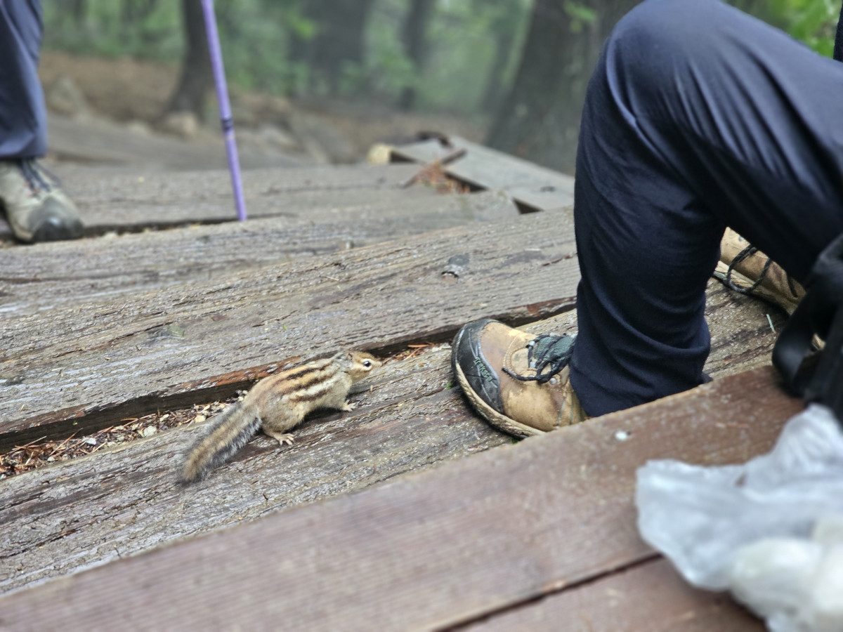 설악산국립공원 오색구간을 오르다 쉬는데 갑자기 다람쥐군이 찾아왔습니다.